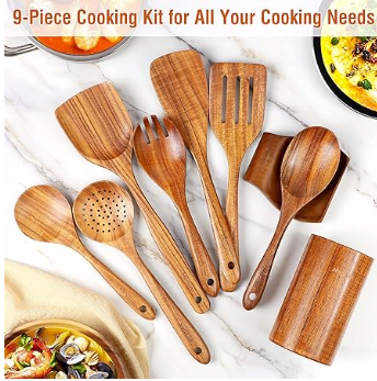 Dr. Reese teaches you to stay away from the poor 4 toxins and this wooden utensil set is a great way to do that with natural solid teak, which is healthy and safe. Teak is densely grained, hard, and will not crack that it one of the most durable woods, stronger than silicone or bamboo. Wooden spoons are sanded by hand many times, and the surface is smooth will not hurt any cooking tools.