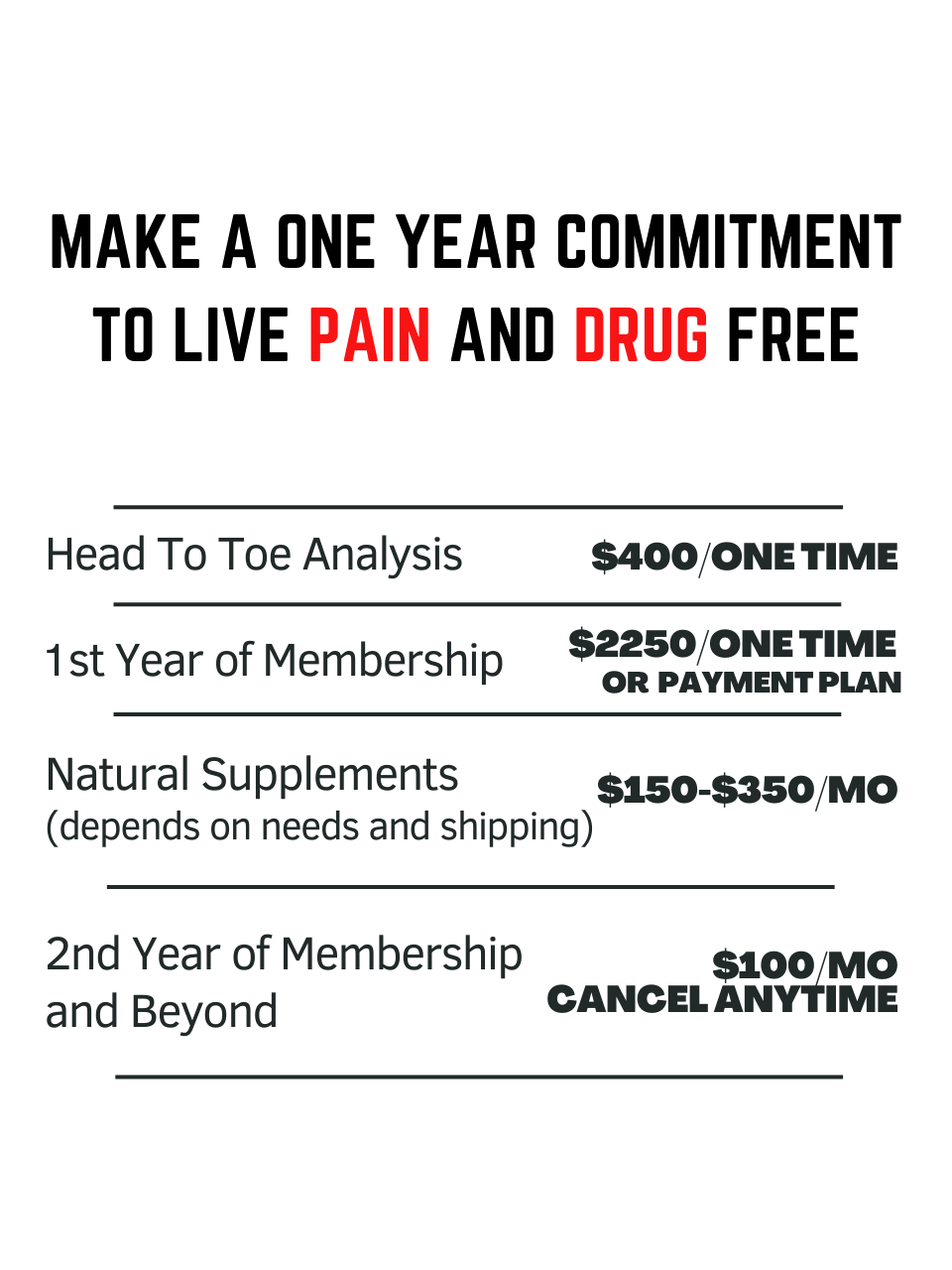 This membership is designed to help you address the root causes of your symptoms and move toward a life free from pain and drugs.
